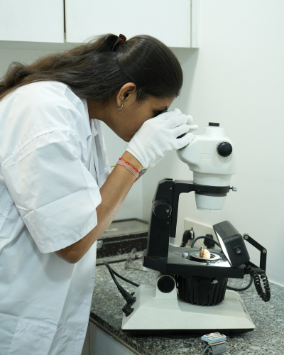At our ISO-certified RRTL – Rudraksha Research and Testing Laboratory, original Nepal Rudraksha are carefully tested and verified by a dedicated research team, handling up to 500 beads daily.