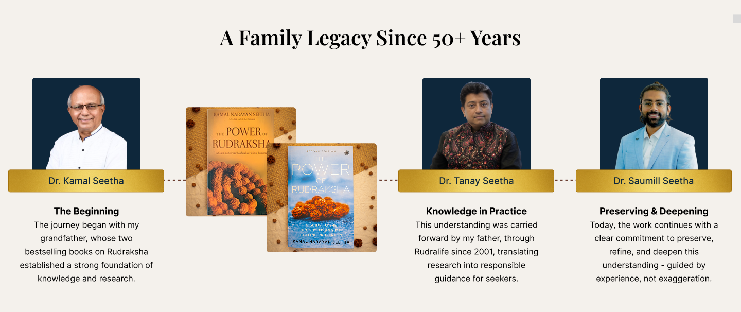 Through an ongoing podcast series with Dr Tanay Seetha, unfiltered knowledge and decades of experience on Rudraksha are shared through natural, honest conversations.